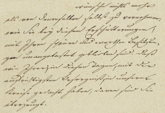 wünsche nichts mehr, als von Demselben selbst zu vernehmen: wie Sie bey diesen Erschütterungen, mit Ihren schönen und werthen Besitzungen unangetastet geblieben sind. Daß wir Ihrer, in diesen Tagen, mit der aufrichtigsten Besorgniß, in unserem Kreise gedacht haben, davon sind Sie überzeugt.