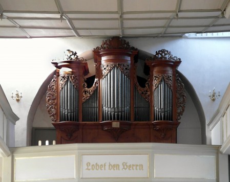 Die Orgel ist ein Werk von Gottfried Silbermann aus dem Jahr 1726 mit einem ungefassten, wohlgestalteten Prospekt und mit 14 Registern auf einem Manual und Pedal. Sie besitzt.720 Pfeifen. Die Orgel wurde 1893 durch Eduard Berger durch Versetzen des Pfeifenwerks tiefer gestimmt. Heute erklingt sie wieder in der original Sibermann`schen Chorstimmung (ein halber Ton höher als die heute übliche Kammerstimmung (a=440 Hz).